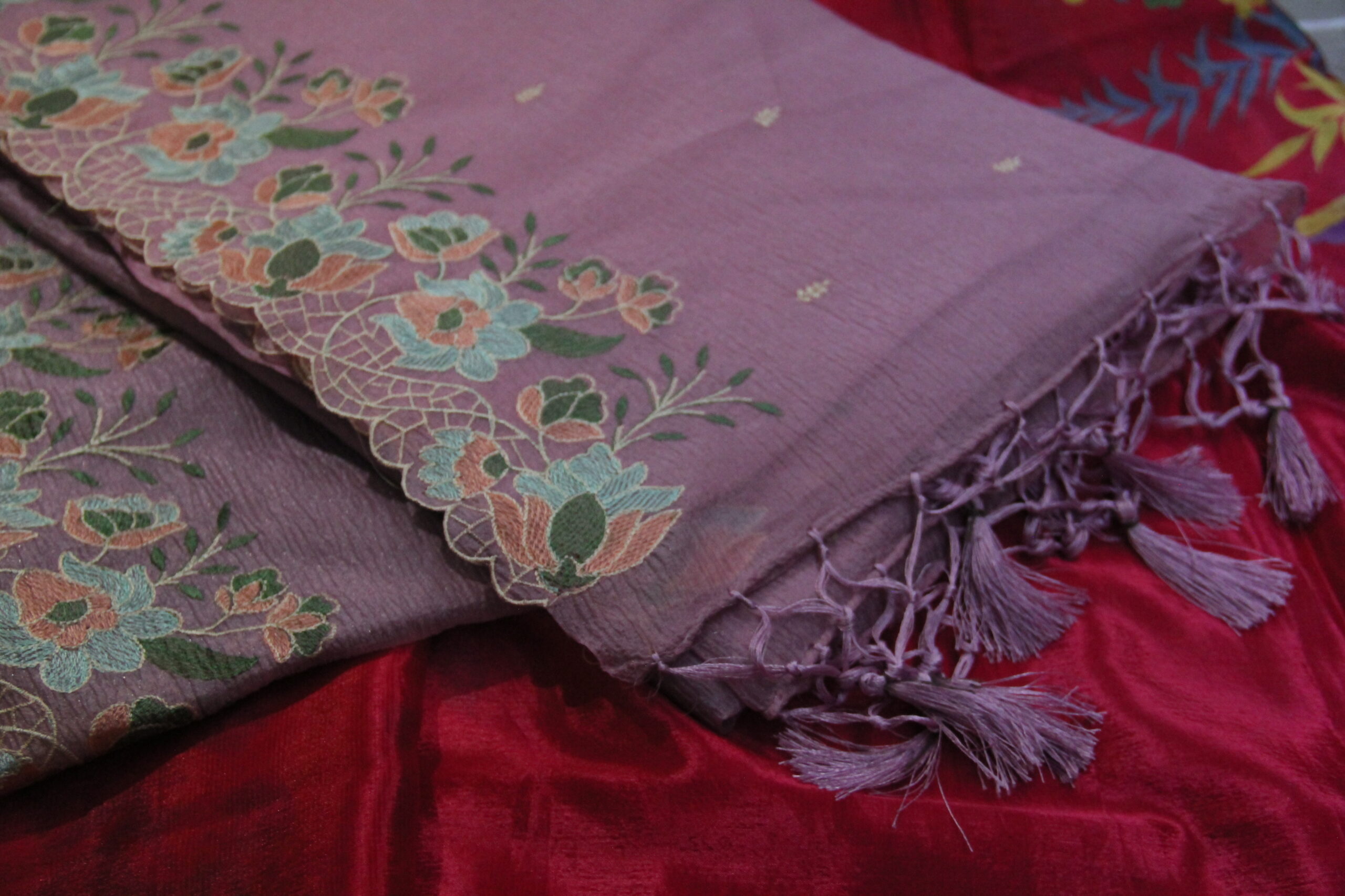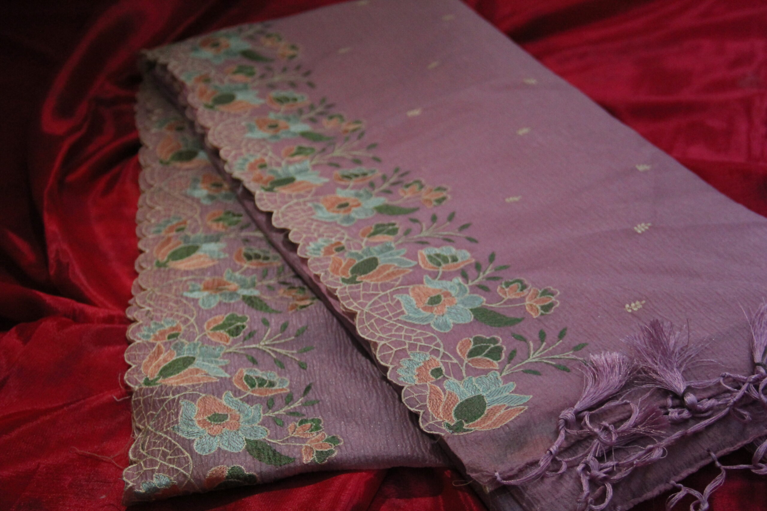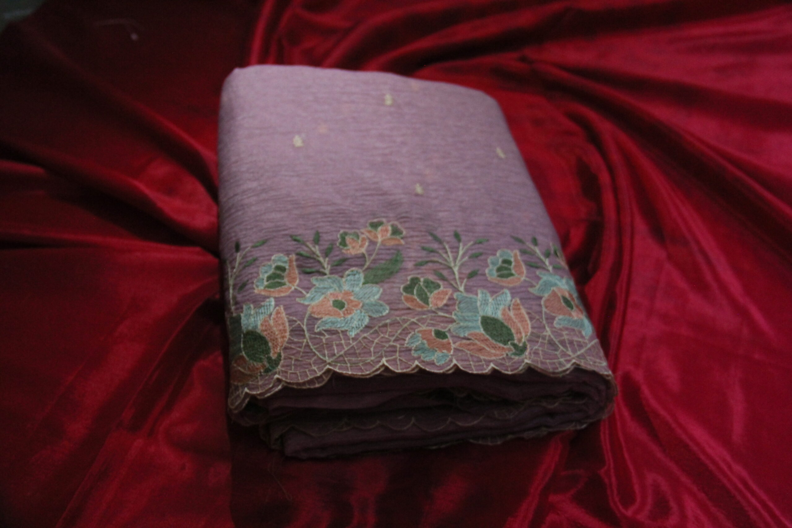 Embroidery work saree crush fabric