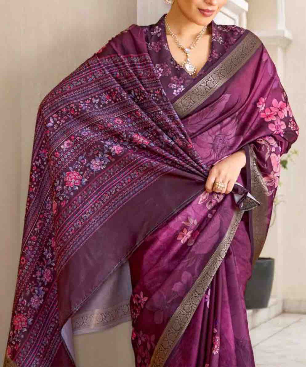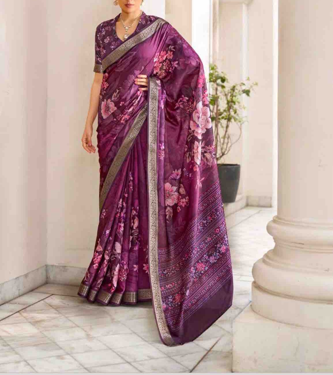 VELVET TUSSER SILK SAREE WITH ZARI BORDER