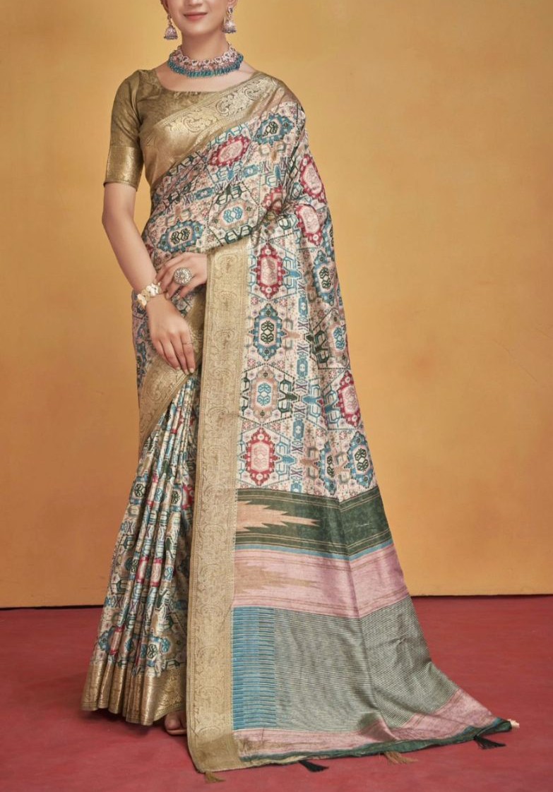 Printed saree with golden border