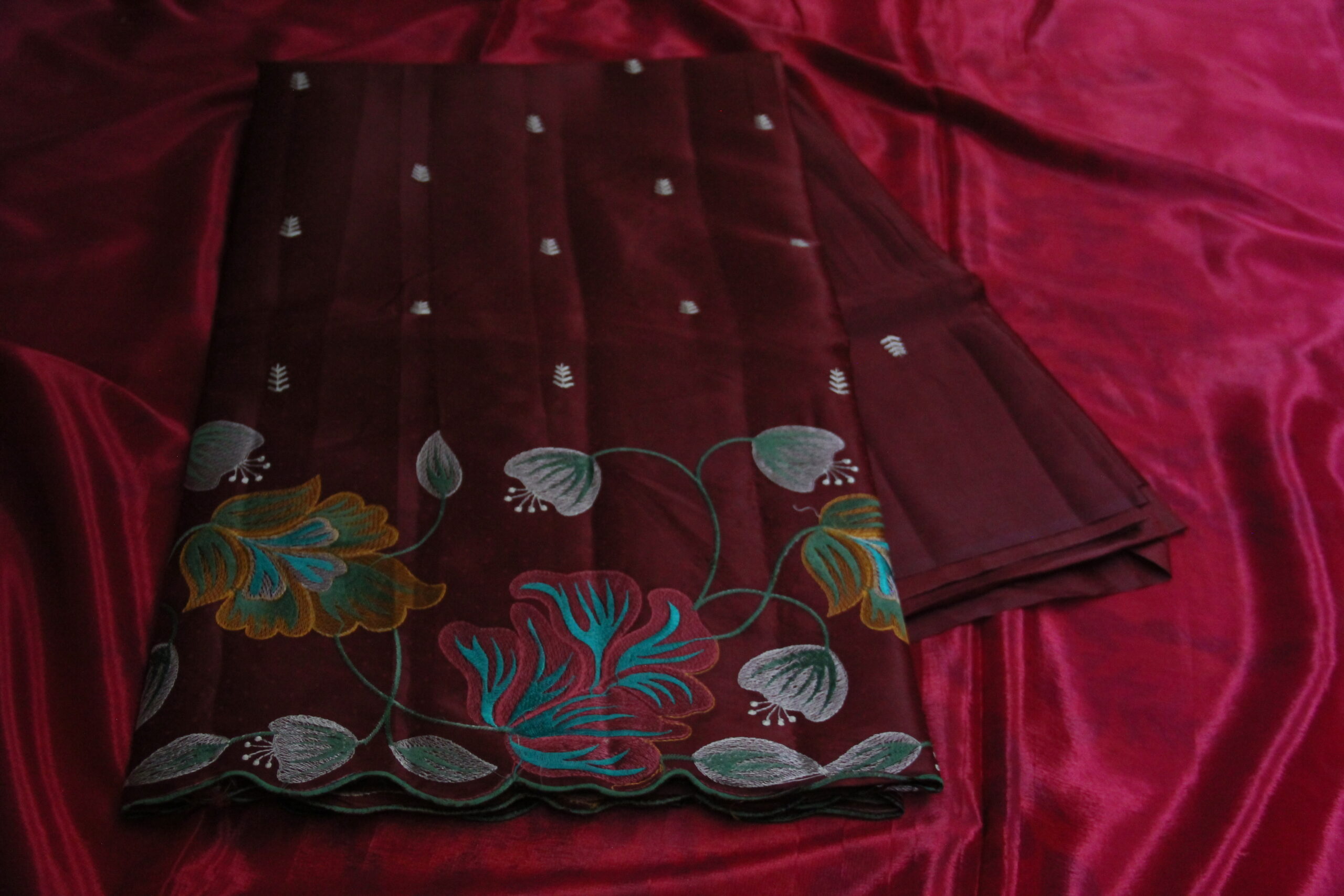 Embroidery work saree with dots