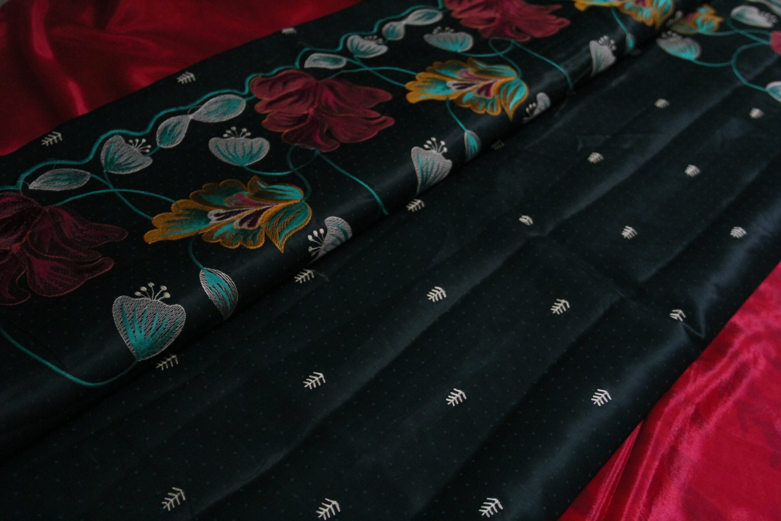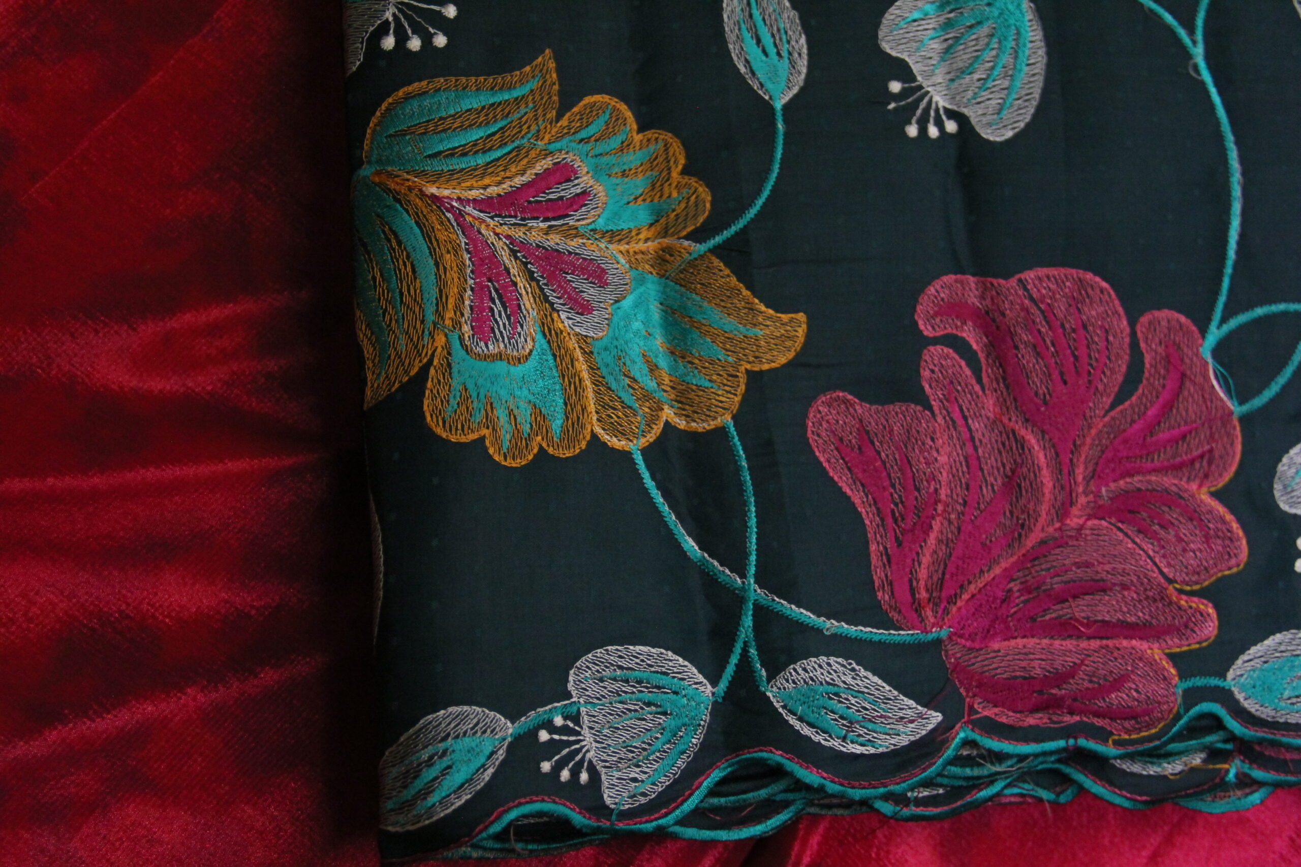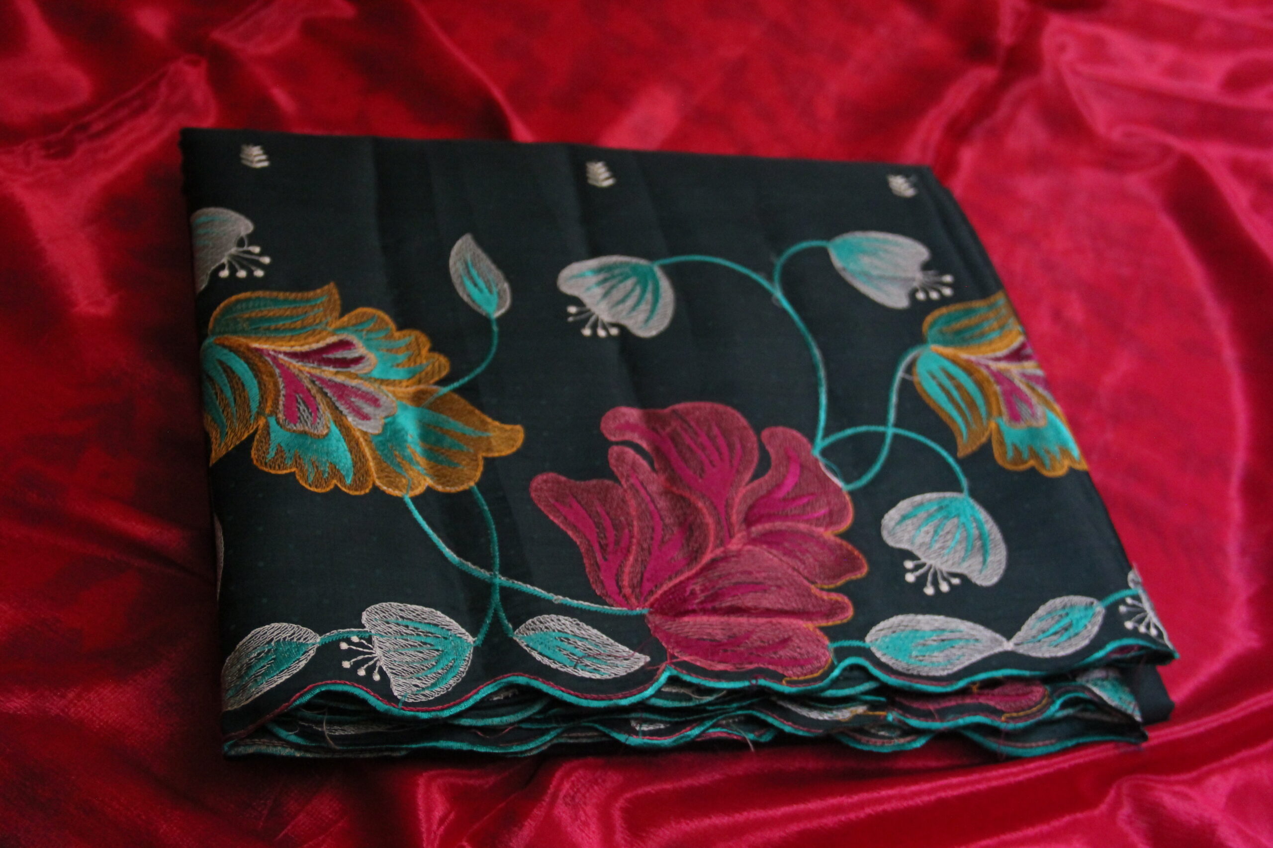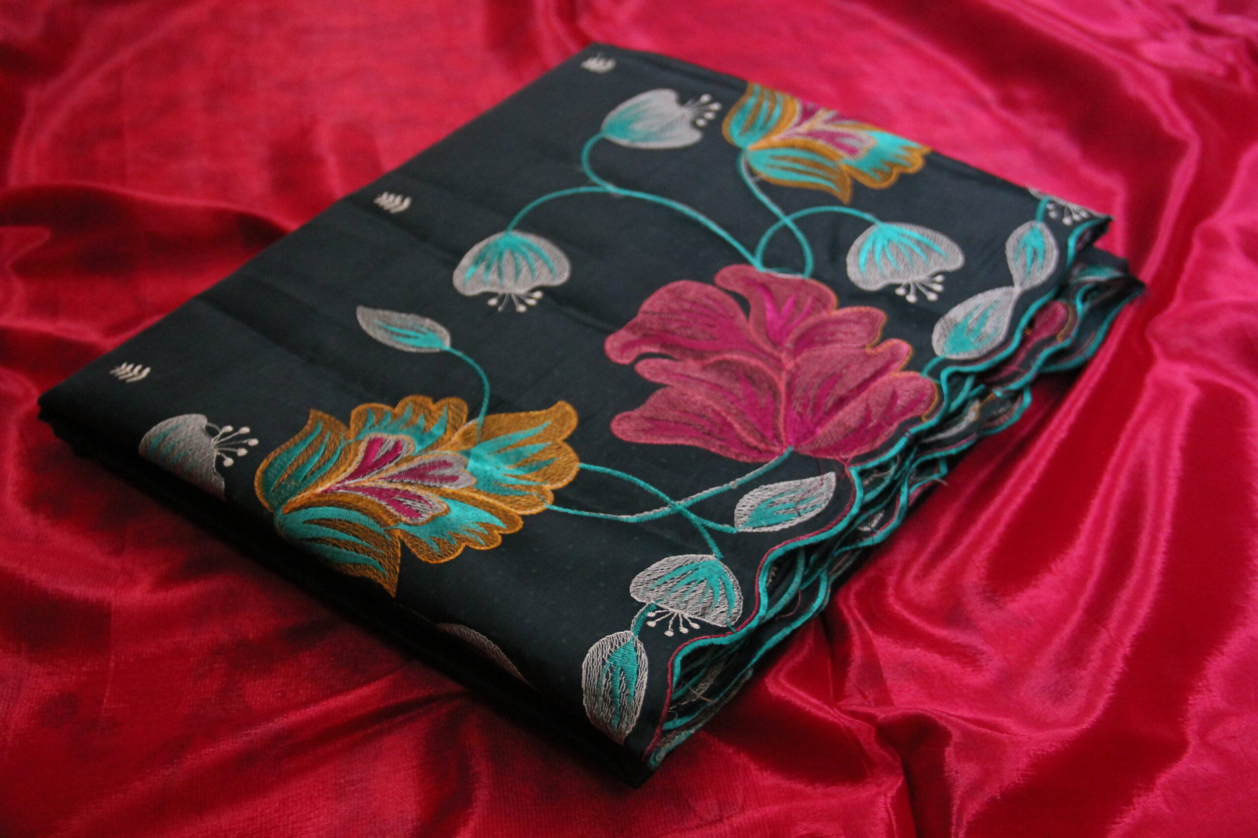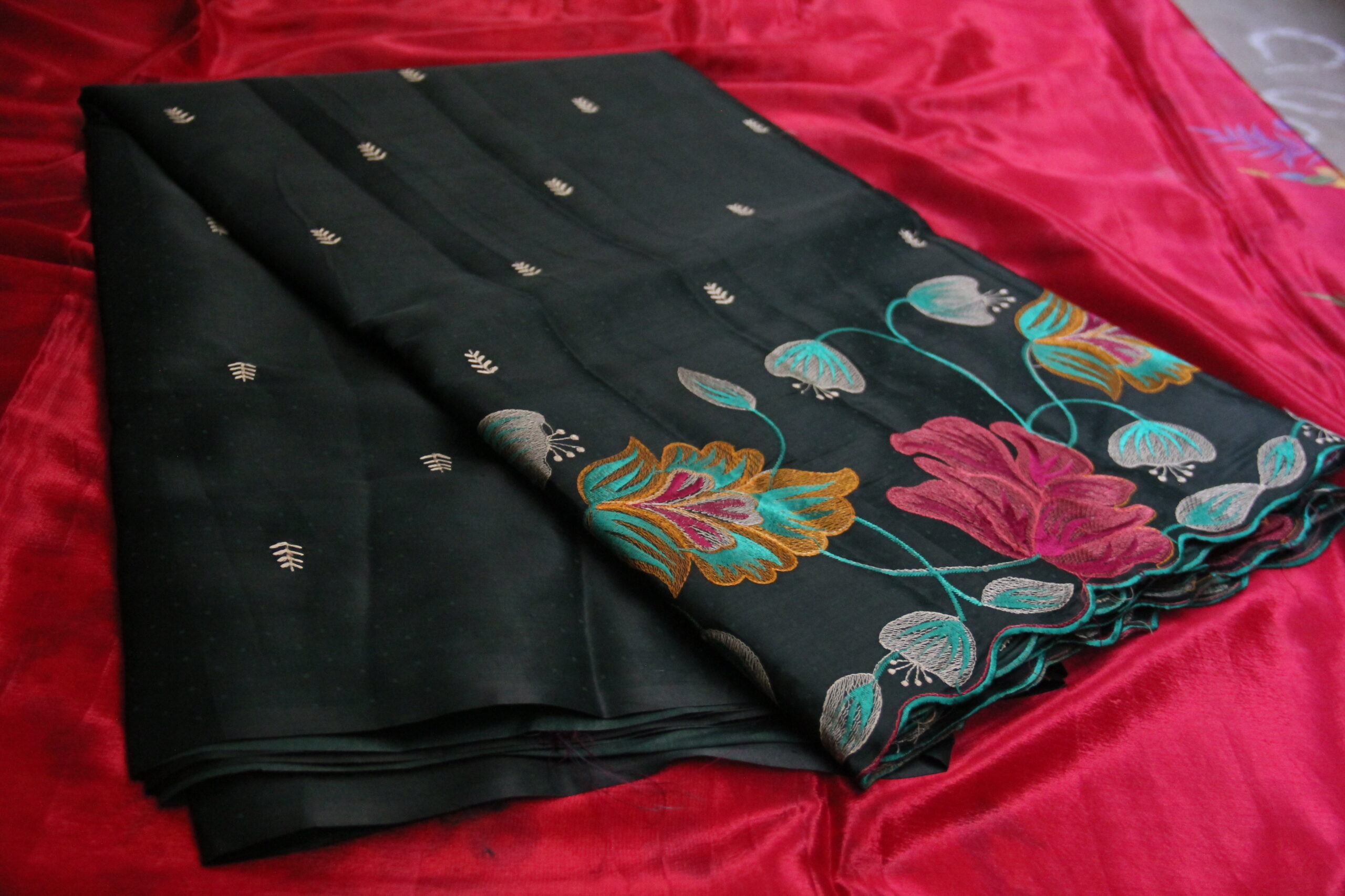 Embroidery work saree crush fabric